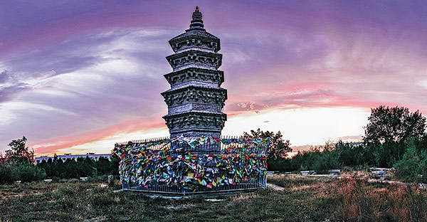 The Northern Pagoda, found on a mound two kilometers to the north of the Shangjing ruins, is a 15-meter-high and five-floor brick pagoda. During the maintenance of the North Pagoda in 1990, a chamber was discovered in its top floor’s roof. There were three small wooden pagodas in the chamber, one of which contained 48 Buddhist relics. Another 18 cultural relics, including a bronze bottle, three silk paintings, and ceramic dishes containing precious spices, were also found in the chamber.