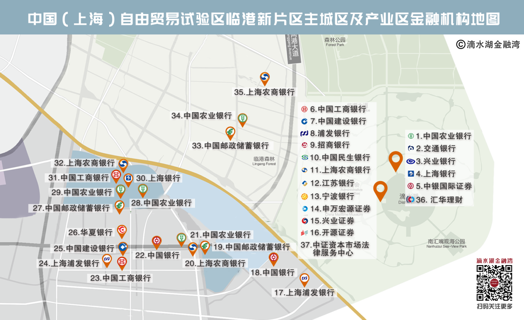 Map of financial institutions in downtown Lin-gang Special Area and industrial areas [Photo/WeChat account: shlgguanweihui]
