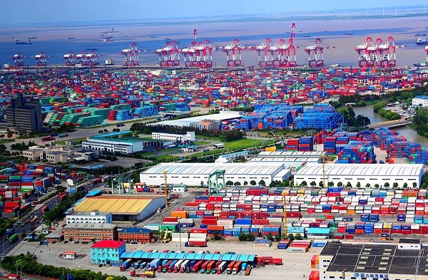 Containers pile up at a port in Shanghai FTZ. [Photo/Shanghai Fabu]
