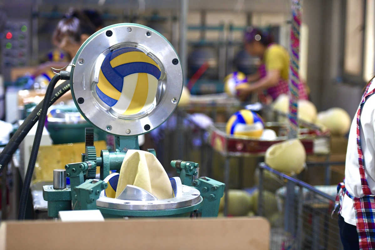 Residents work on a production line in a workshop of a ball maker in Luofa township of Langfang, Hebei province. [Photo by Zheng Chenzi/For chinadaily.com.cn]