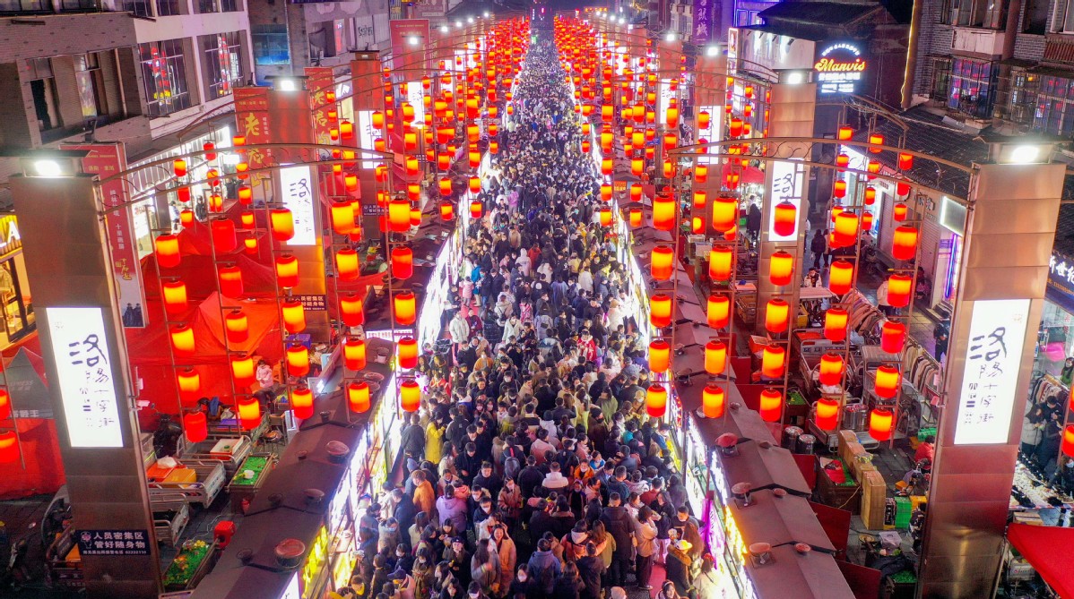 Residents and tourists enjoy their leisure time at a business street in Luoyang, Henan province, on Dec 31, 2022. [Photo/IC]