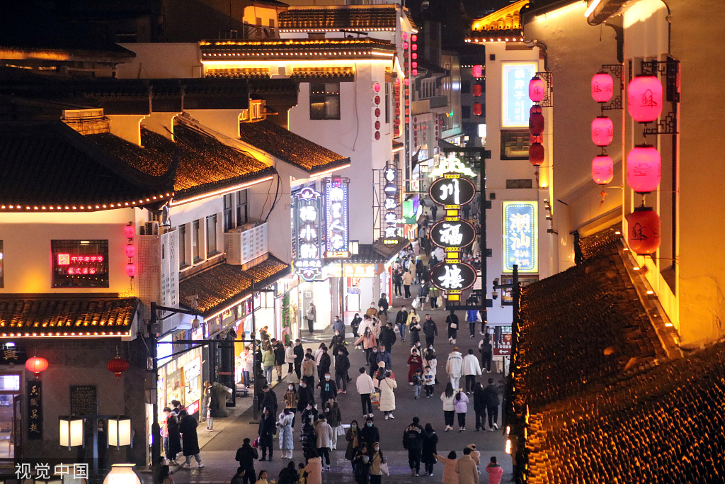 People enjoy their leisure time at a business street in Suzhou, Jiangsu province, on Jan 2, 2023. [Photo/VCG]