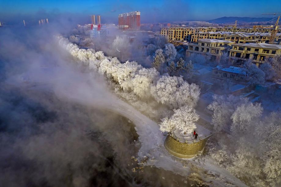 Residents and tourists in Jilin city, Jilin province, welcomed their first rime ice of the new year recently. [Photo by Dong Yuxin/For chinadaily.com.cn]