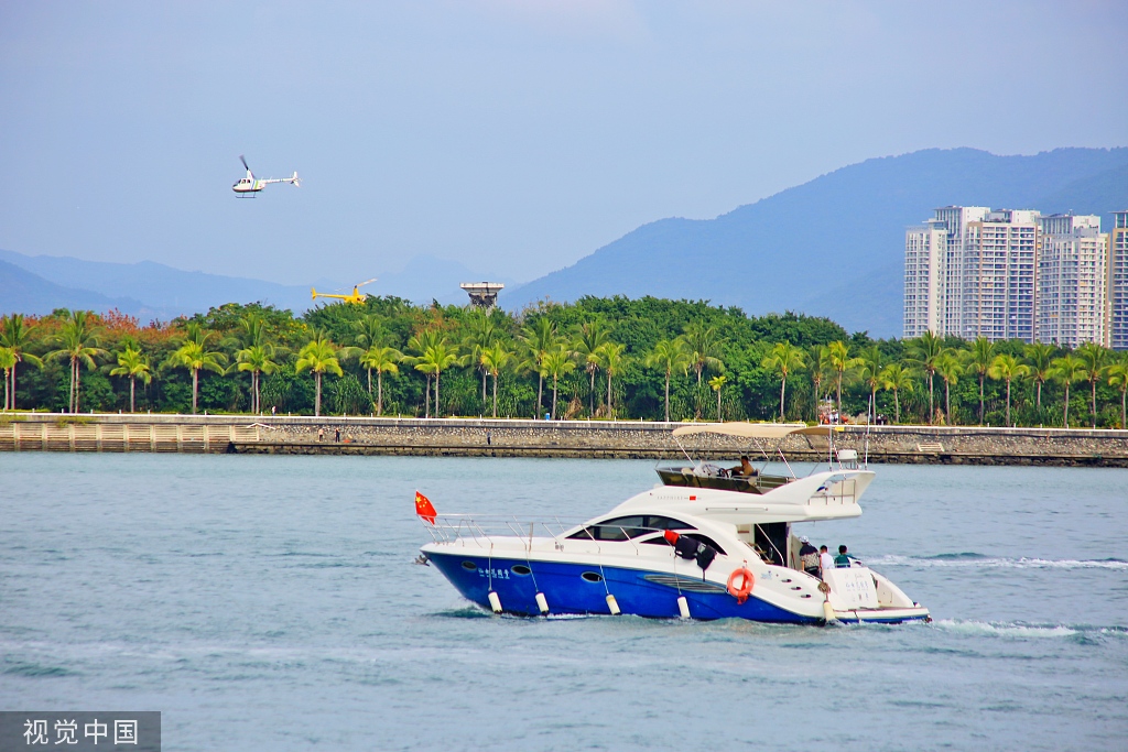 Tourists ride on a yacht in Sanya, South China's Hainan province, Jan 9, 2023. [Photo/VCG]