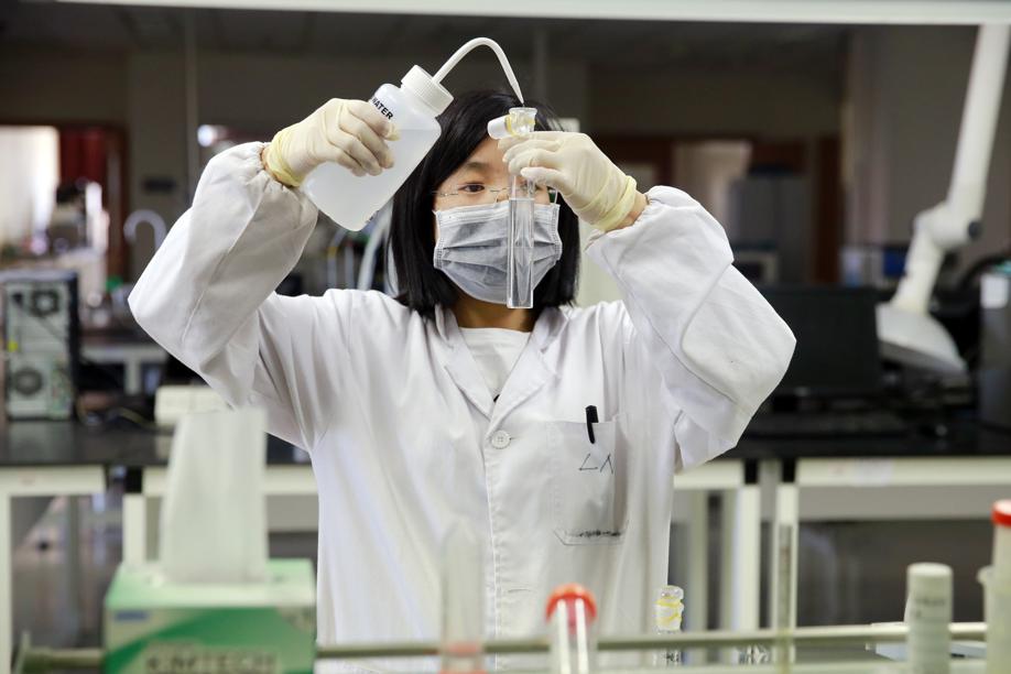 A researcher experiments in the biosciences sector. Binhai New Area will build 10 industrial clusters for bio-manufacturing, cell and gene treatment, brain science and intelligent medicine. [Photo provided to chinadaily.com.cn]