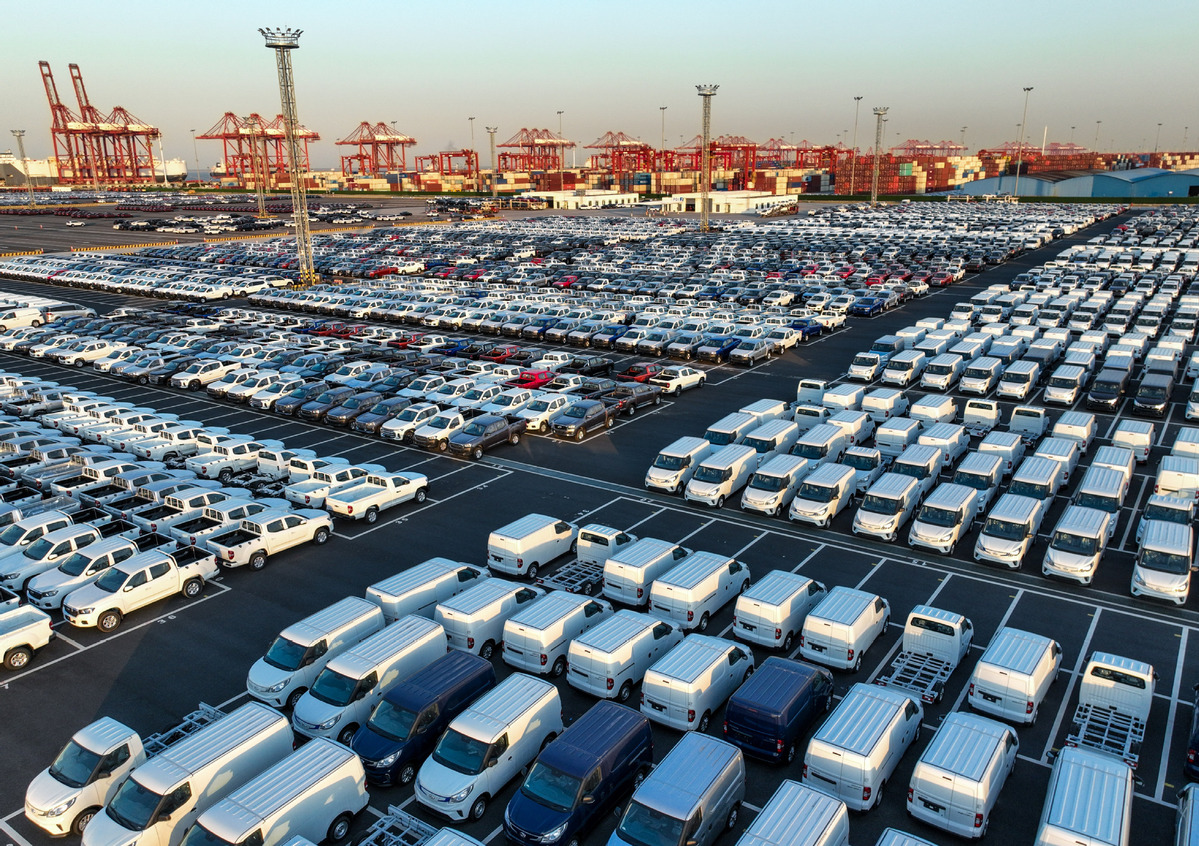 This photo taken on March 13, 2023 shows vehicles at Taicang Port in Jiangsu province ready to be exported. [Photo/Xinhua]