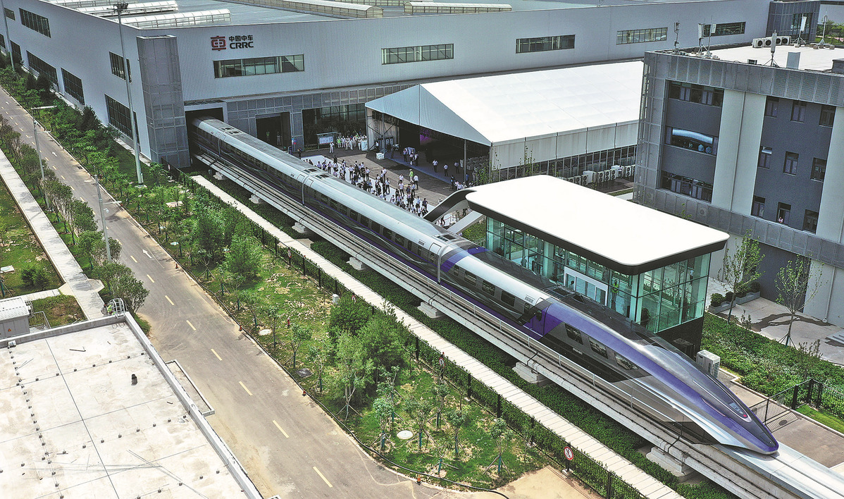 After CRRC Qingdao Sifang Co Ltd, a Shandong province-based subsidiary of CRRC, rolled out a high-speed maglev train with a designed top speed of 600 km/h in 2021, the construction of commercial maglev lines for this type of trains should also be considered and promoted by the government domestically, said Sun, who is also a member of the 14th National Committee of the Chinese People's Political Consultative Conference.