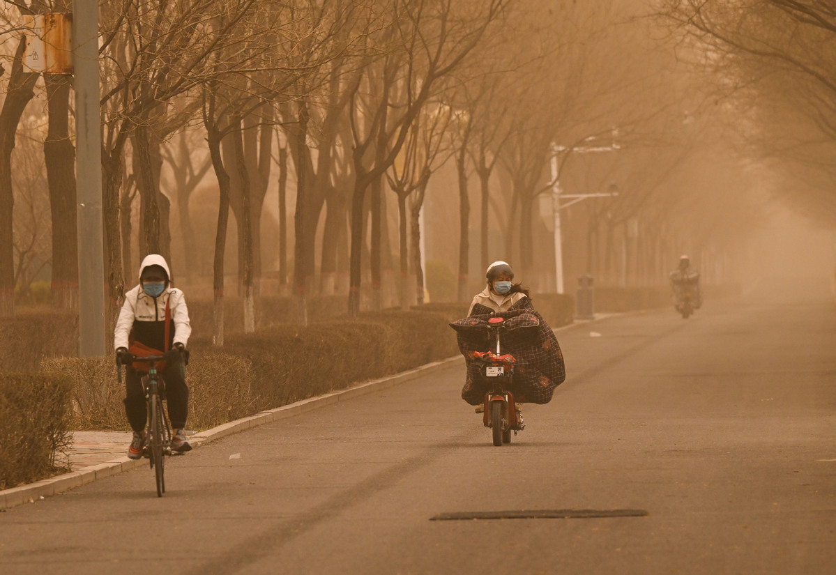 People ride on bicycles in Hohhot, Inner Mongolia, April 10, 2023. [Photo/Xinhua]