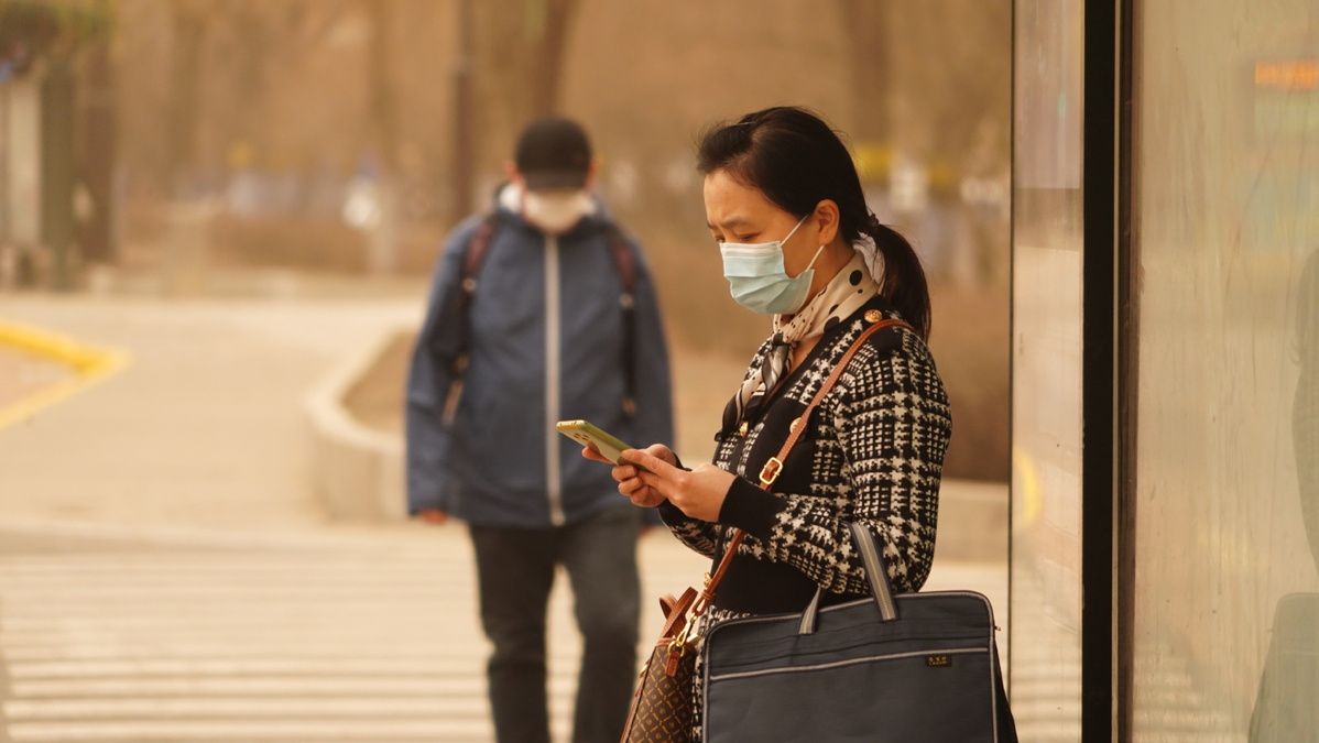 People wait for transport at a bus stop in Harbin, Heilongjiang province, April 10, 2023. [Photo/Xinhua]