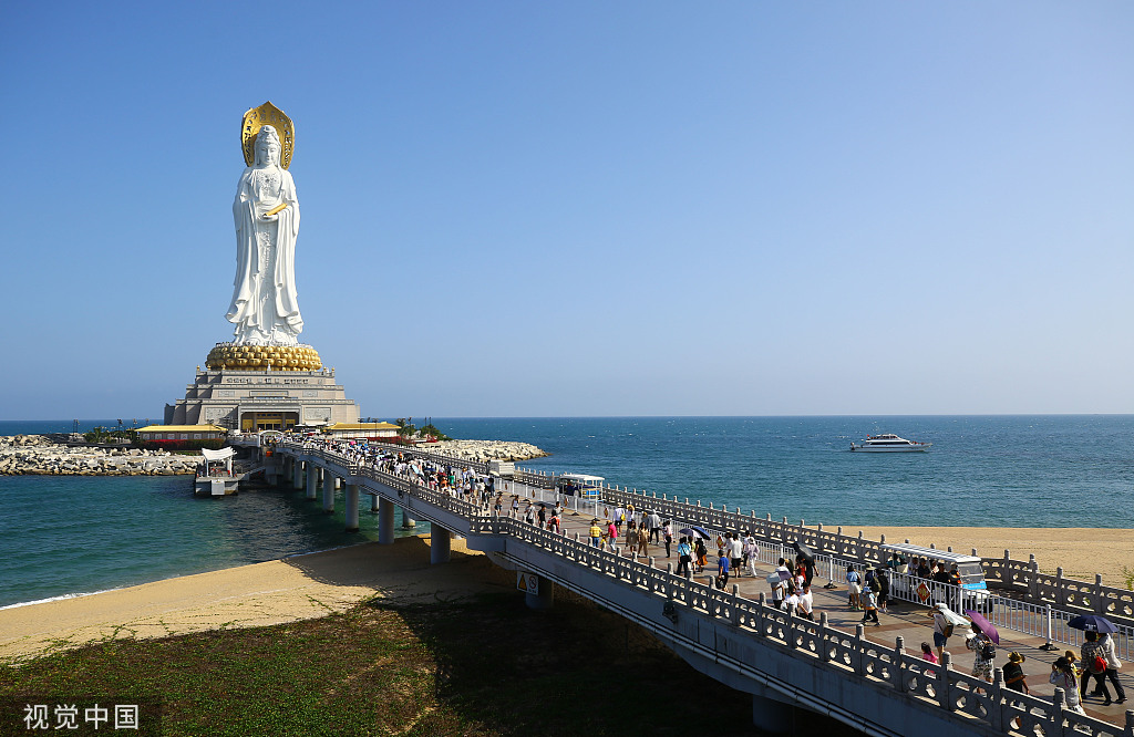 Visitors are seen at the Sanya Nanshan Buddhism Cultural Tourism Zone in Sanya, Hainan province, on May 2, 2023. [Photo/VCG]