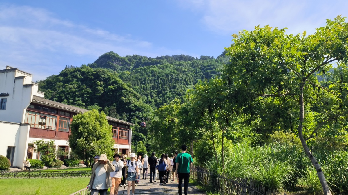 Visitors walk on the alley at the foot of Qiyun Mountain in Xiuning county of Huangshan city, Anhui province, May 15, 2023. [Photo by Zhang Wenfang/chinadaily.com.cn]