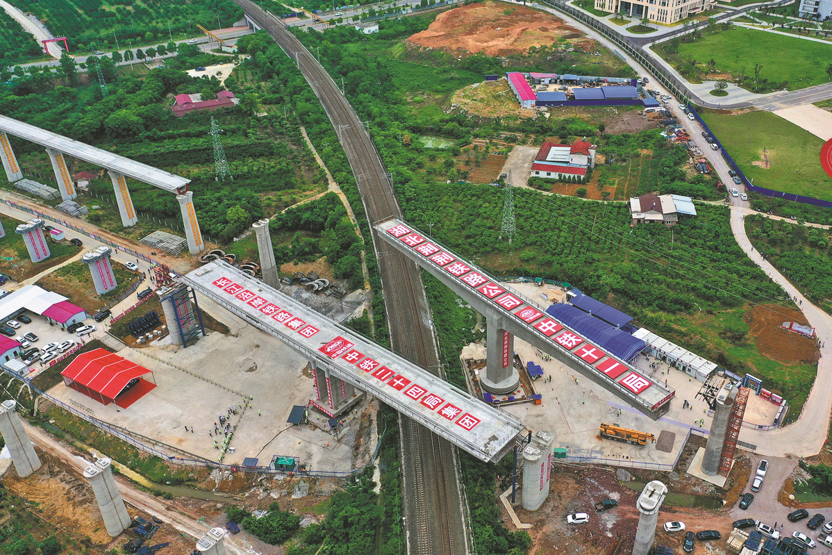 For instance, in Jingmen, Hubei province, two high-speed railway bridges spanning the Jiaozuo-Liuzhou Railway were rotated into position after 70 minutes of delicate engineering work last week, CR24 said.