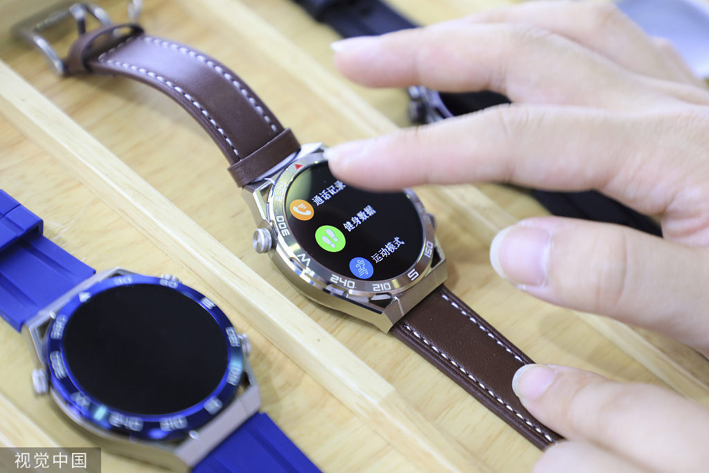 A visitor tries out a smartwatch at a tech expo held in Shanghai, May 30, 2023. [Photo/VCG]