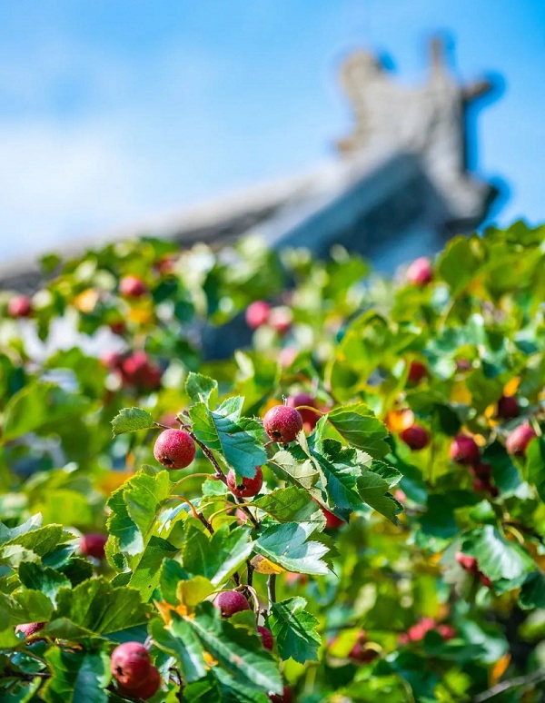 When many plants wither in autumn, hawthorn apples in Nishan burst with a vigorous red color. [Photo/WeChat account: NiShanShengJing]