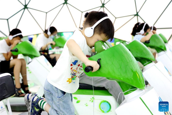 A child visits the Hangzhou Low Carbon Science and Technology Museum in Hangzhou, East China's Zhejiang province, July 8, 2023. [Photo/Xinhua]