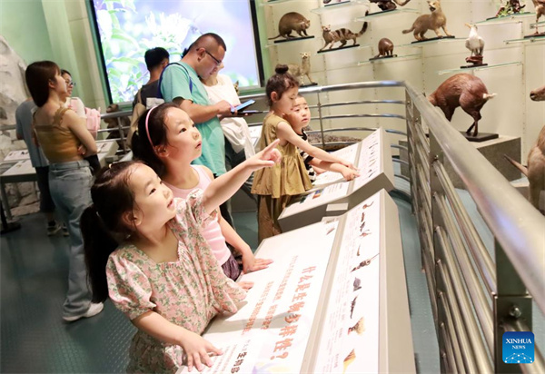 Children view animal specimens at Changzhou Museum in Changzhou, East China's Jiangsu province, July 8, 2023. [Photo/Xinhua]