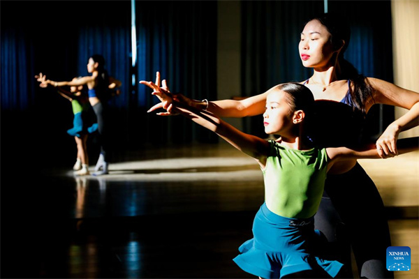 A student learns dancing under the guidance of a teacher in Wuzhi county of Jiaozuo, Central China's Henan province, July 8, 2023. [Photo/Xinhua]