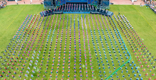 A thousand selected zhuá lè performers display 18 sets of movements, embodying the lively rhythm, spectacular arrangement, and graceful choreography.