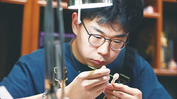 Growing up in a family renowned for its expertise in the art of dough figurines, Lang Jiaziyu developed a fascination for the process of molding dough from a young age. "I was only 5 years old when I told my father that I wanted to devote myself to making dough figurines," Lang recalled. "I made a small doll in a sitting gesture, which took me two and a half hours."