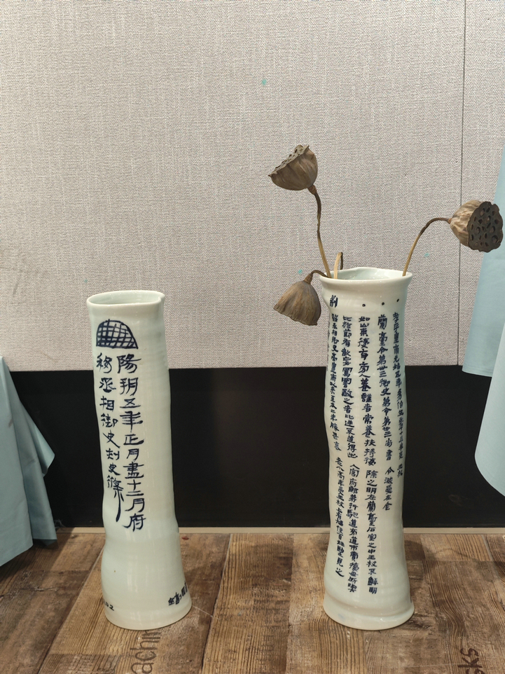 Jiandu-inspired vases is on view at the Museum of Northwest Normal University in Lanzhou, capital of Northwest China’s Gansu province on July 31, 2023. [Photo/china.org.cn]