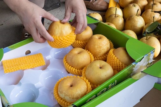 Ripe Cuiguan pears have a round appearance, a small core, and a sweet taste.