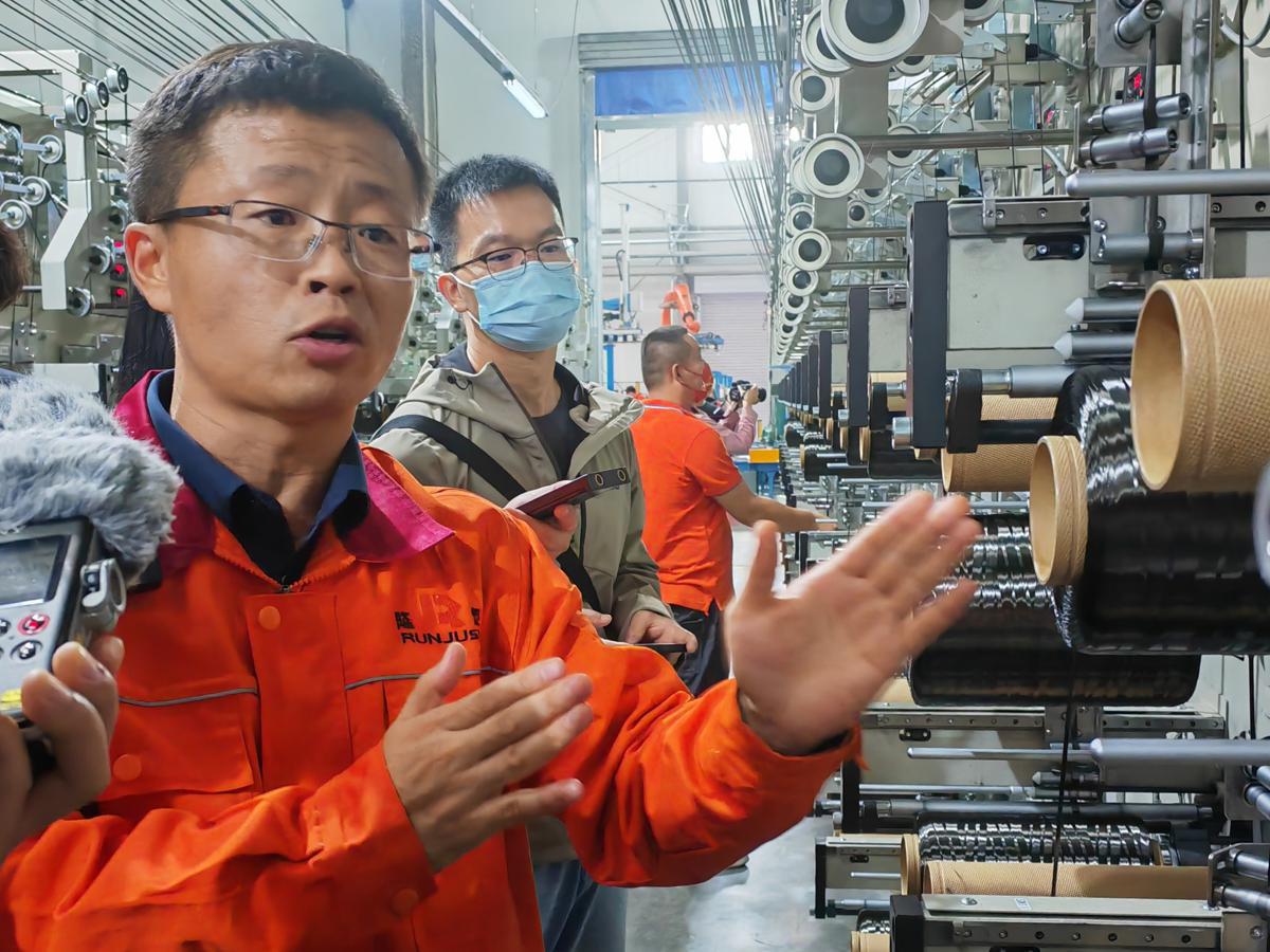 Zhou said that carbon fiber is an inorganic fiber with a carbon content of more than 90 percent. It has excellent characteristics such as high temperature tolerance, corrosion resistance and electrical and thermal conductivity. It has wide application in aerospace, sports, new energy and many other fields.