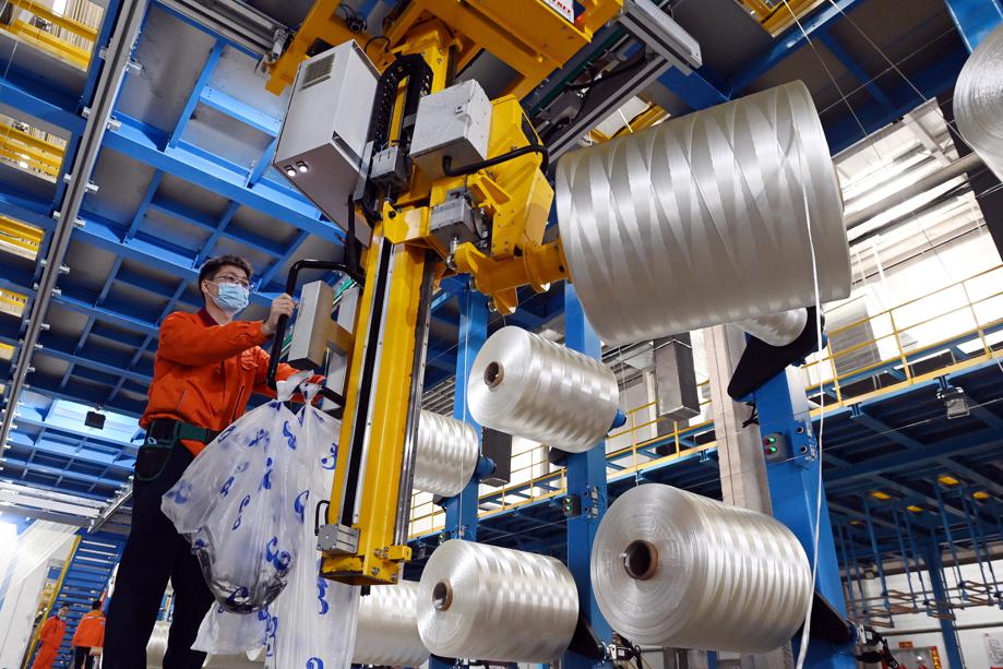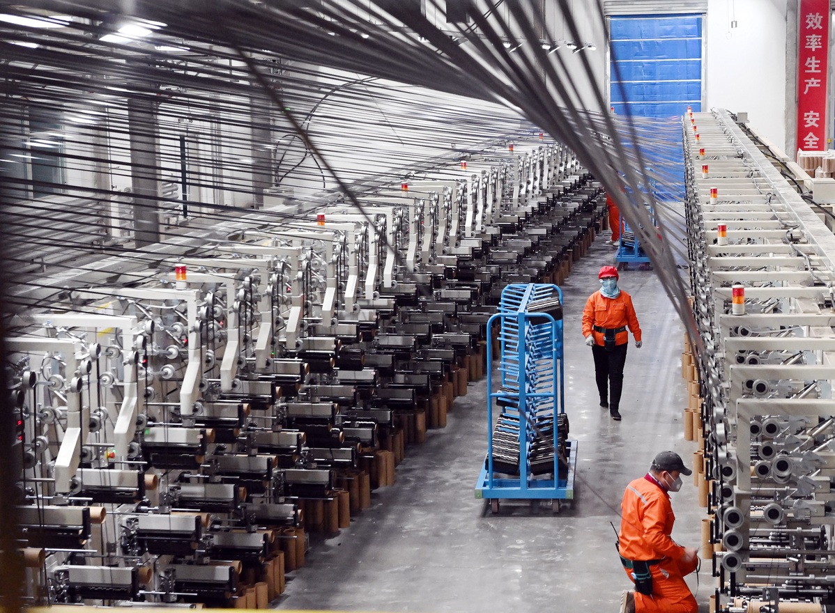 Machines were running at full speed on Wednesday to produce high-performance carbon fiber products at a factory in Urumqi, Xinjiang Uygur autonomous region.