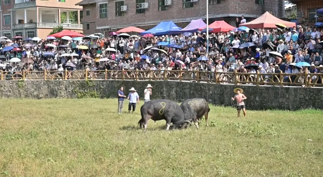 Villagers and tourists watch a bullfight on Sept 25. [Photo by Zhao Yunmei/Provided to chinadaily.com.cn]