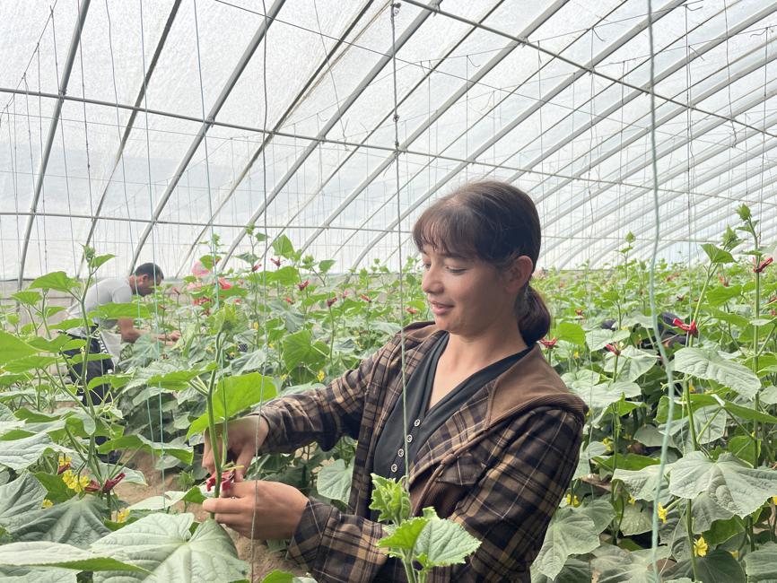 Aynur Kurban is one resident capitalizing on Aktax Haziri's agricultural boom. After four years of experience, she independently contracted two greenhouses to grow cucumbers this year. "I felt it was time to become independent and increase my family's income," Aynur said. "I have to work for myself."