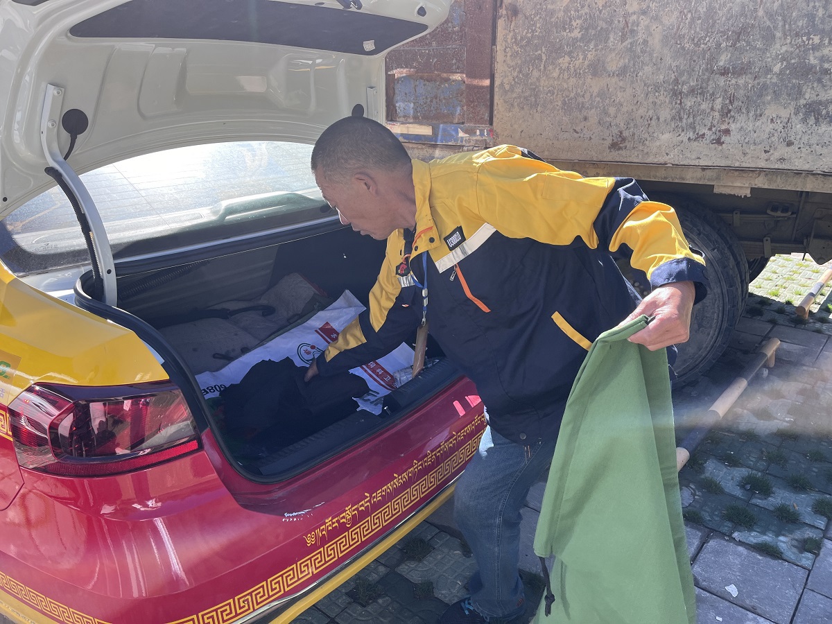 Local driver Wei Changming sorts trunk for his car, which serves as the mini-bus in rural areas at Rangtang county of Aba Tibetan and Qiang autonomous prefecture in Sichuan province this month. [Photo by LUO WANGSHU/chinadaily.com.cn]