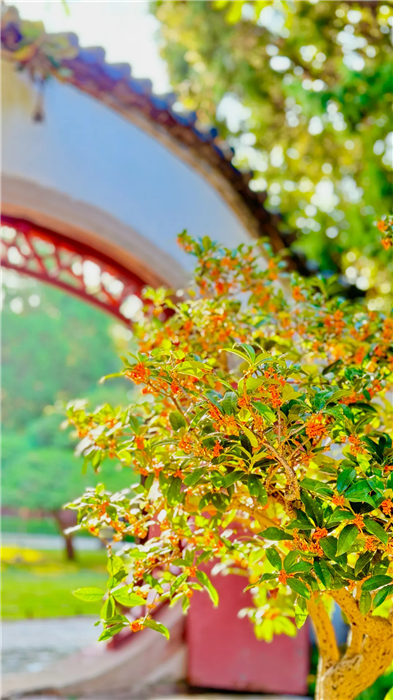 When the autumn breeze blows, the scent of osmanthus arrives delicately, adding a unique charm to this ancient temple. [Photo/WeChat account: SDTXTA]