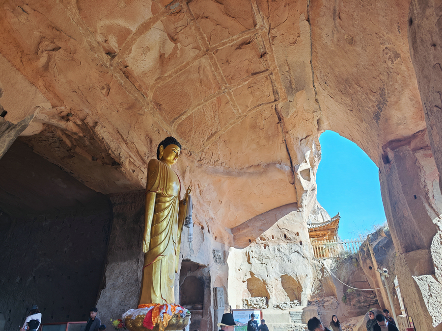 A standing Buddha statue is seen inside the North Matisi Grottoes, in Sunan Yugur autonomous county of Zhangye, Northwest China’s Gansu province, on Oct 18, 2024. [Photo by Yang Xiaoyu/chinadaily.com.cn]