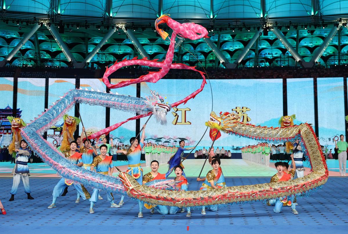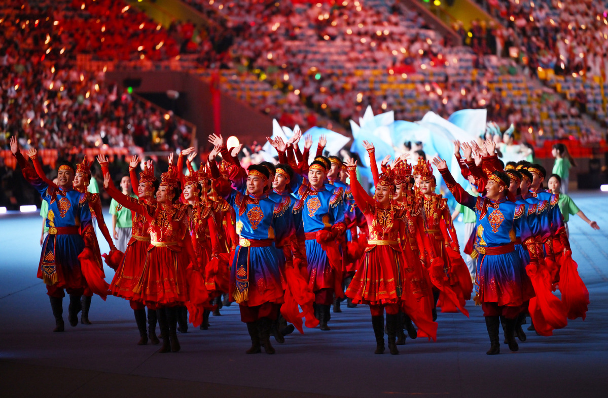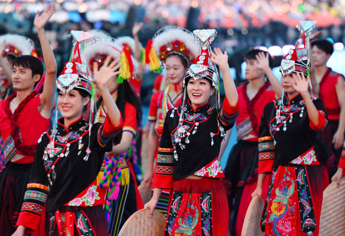Artists perform during the opening ceremony of the 12th National Traditional Games of Ethnic Minorities of the People's Republic of China in Sanya, South China's Hainan province, Nov 22, 2024. [Photo/Xinhua]
