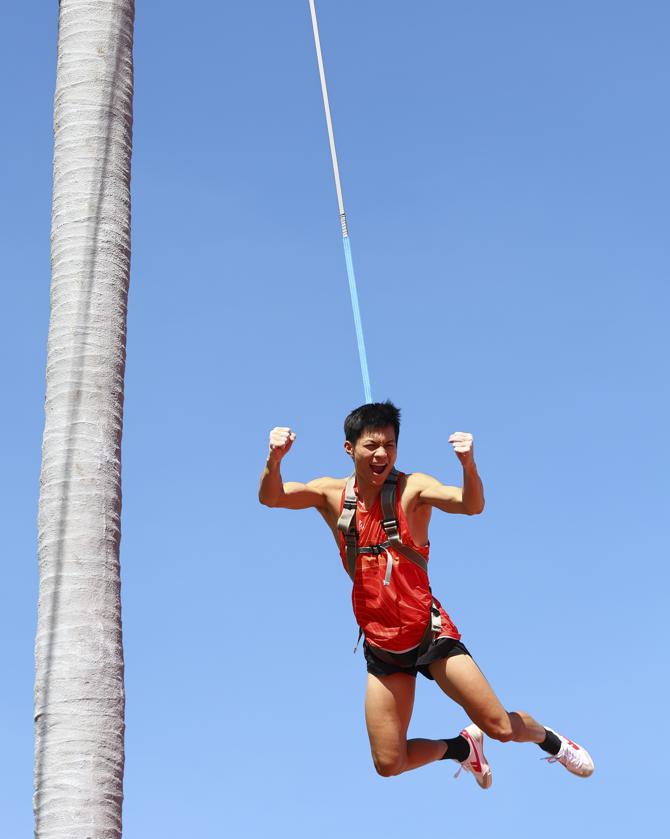 "The artificial coconut trees used in the Games are even harder to climb than real ones. They are smoother and straighter, whereas real coconut trees are more curved and provide more friction," Luo said.