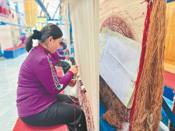 The company was once a small family workshop. In 2008, after traditional Uygur crafting techniques for handmade carpets were added to the national-level intangible cultural heritage list by the State Council, the workshop leveraged support policies to upgrade into a company, according to Mawlan Muhtar, the manager of Nakixwan Carpets.
