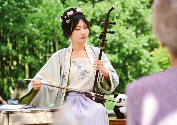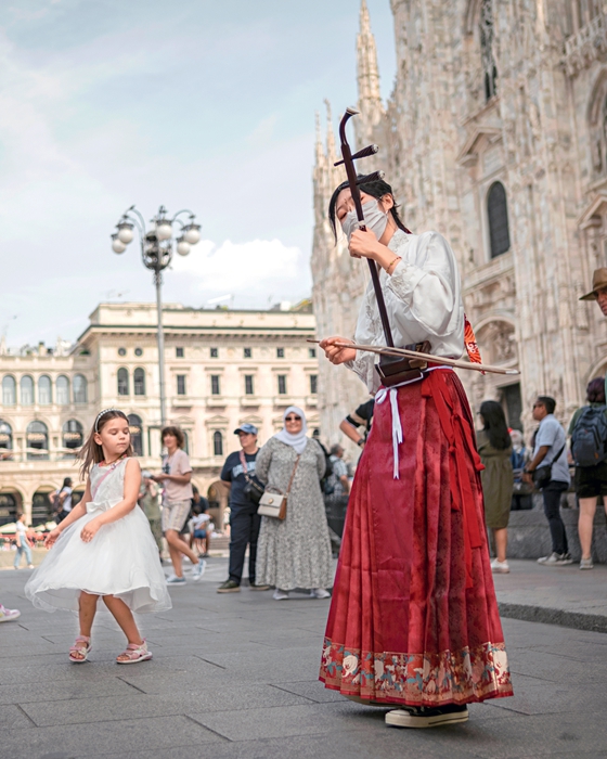 "I hope to organize my concert in the near future, so I can help more people learn about Chinese folk music." Zheng Xiaohui, a postgraduate student in Milan, Italy, shared that wish during an interview at the beginning of the year. She was happy when her wish came true. In May, Zheng performed erhu (a two-stringed fiddle) while her schoolmate, Ma Ruomeng, performed pipa (a stringed, pear-shaped instrument) during their outdoor concert in Milan. Having played erhu since she was 9, Zheng has always enjoyed using the traditional Chinese instrument as a "bridge" to promote cultural communications between China and the rest of the world. Earlier this year, Zheng was invited to perform during an exhibition in Milan, to commemorate the 700th anniversary of the death of Marco Polo, the legendary Italian traveler.