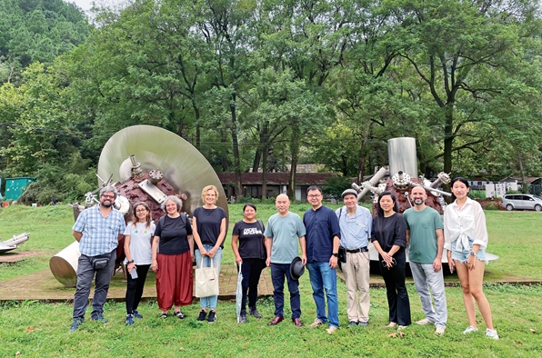 Zhang Jingjing (third from right) leads international artists during their inspection tour of Jingdezhen.