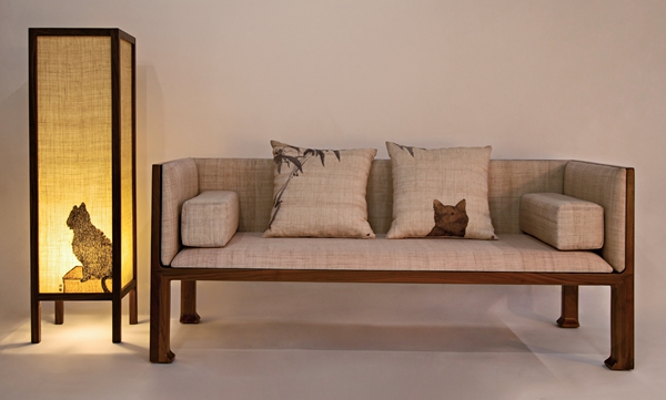 One of Wu's masterpieces is a collection of furniture. The embroidered patterns on the furnishings come from the original paintings of Pu Sheng. Wu used a technique of xiabu embroidery that allows the threads to blend naturally into the cloth's texture. "The design of the works reflects my ideal life … Sitting on a comfortable sofa, one can listen to music or read, in the company of someone he/she loves," Wu explains.