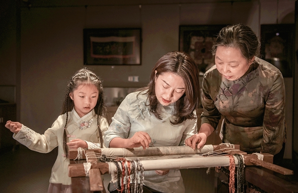 Wu, 37, has had a keen interest in painting since she was a child. In 2009, she graduated from the department of fine arts history of Guangzhou Academy of Fine Arts. She was recruited by a bank, but she longed for a career as an artist. "After I got to know my husband, he took me to visit some exhibitions of embroideries. Gradually, I developed an interest in xiabu embroidery," Wu recalls. She was deeply affected when she learned Zhang had gone all out to inherit and develop the craft.