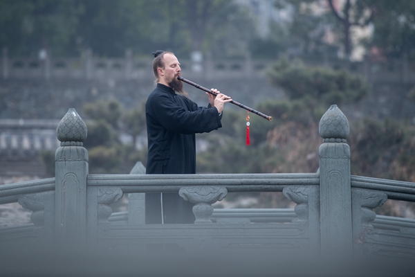 Pinnick's passion for traditional Chinese culture has deeply touched his wife. Cao believes Pinnick has a Chinese heart, despite having a foreigner's face. "He is eager to learn traditional Chinese culture comprehensively. Besides martial arts and Taoism, he also learns tea culture and practices traditional Chinese musical instruments, such as guqin (a seven-stringed Chinese zither) and dongxiao (a vertical end-blown flute made of bamboo). He even wrote a book, in English, on how to play dongxiao, so he could introduce it to more foreigners," Cao says.