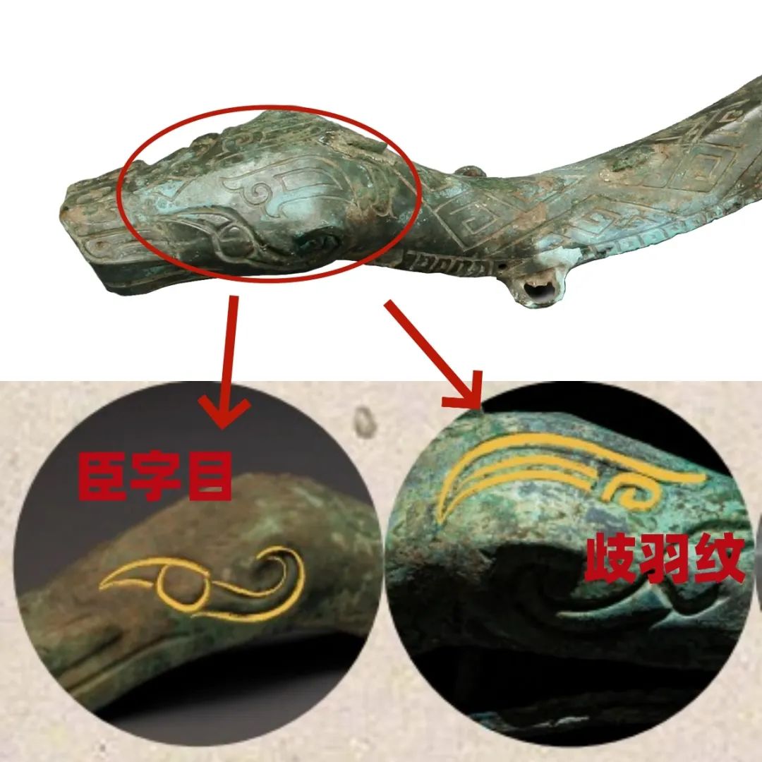Close-up of the bronze snake’s eye and eyebrow [Photo/Official WeChat account of the Sanxingdui Museum]