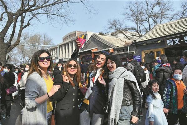 Visitors enjoy the old Beijing vibe at Nanluoguxiang. [Photo provided to China Daily]