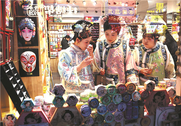 Visitors dressed up in Manchu ethnic clothing. [Photo by Zou Hong/China Daily]