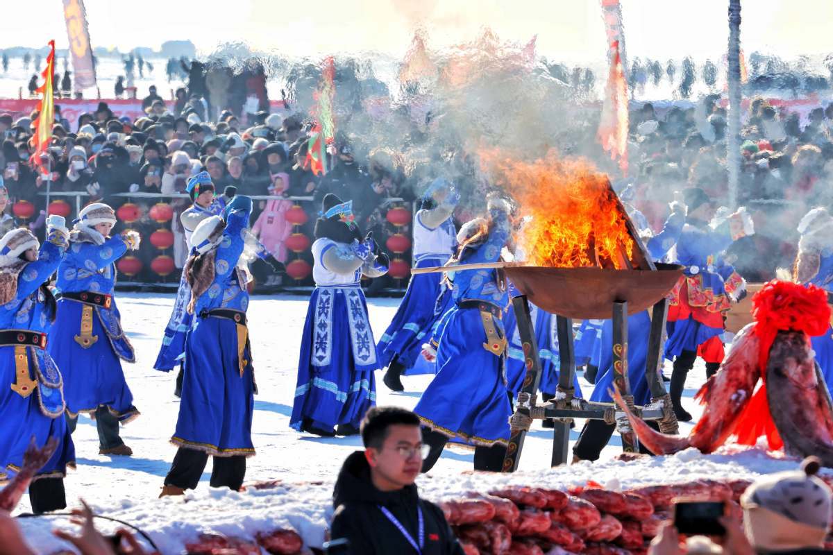 The 23rd Ice and Snow Fishing and Hunting Cultural Tourism Festival kicked off on Saturday at Chagan Lake in Jilin. [Photo by Jiang Dong/chinadaily.com.cn]