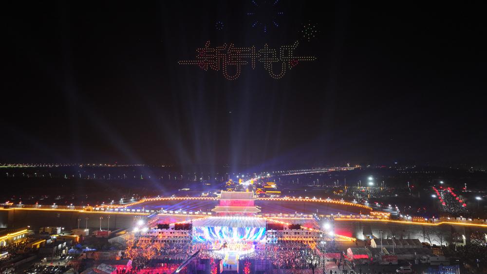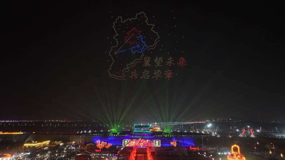 Over 1,000 drones soared into the sky to create scenes of landmarks such as Beijing's Tiananmen Square, Tianjin's Five Avenue area, Hebei's Xiong'an New Area and Zhengding county.