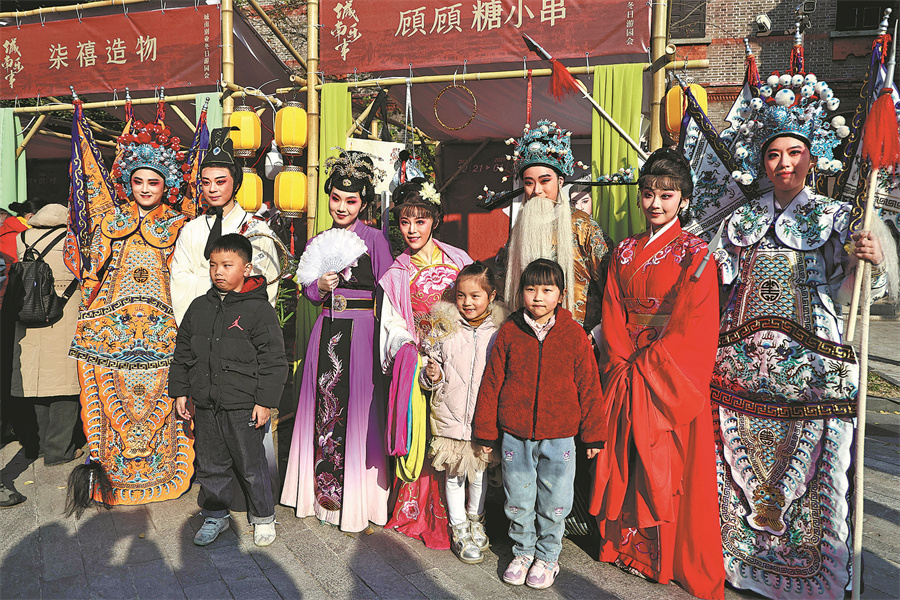 The troupe poses for photos with children. [Photo provided by Xu Peiqin/For China Daily]