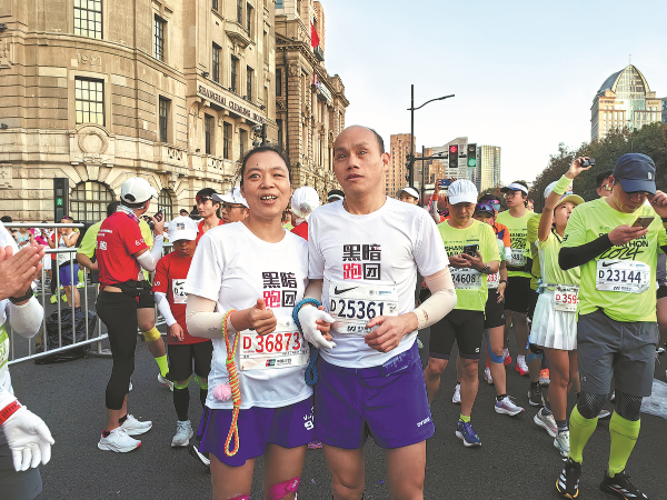 During the 2024 Shanghai Marathon on Dec 1, assisted by five escort runners, Chen and Lei accomplished a 42.19-kilometer full marathon in 5 hours and 47 minutes.