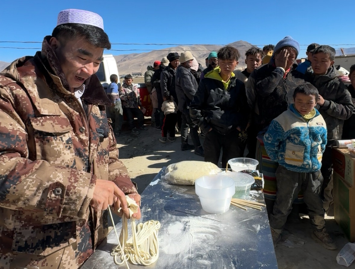 In the early hours of Wednesday, a team from a Gansu province beef noodle restaurant arrived in the quake-hit Dingri county, Shigatse city, Xizang autonomous region, bringing warm noodles for the residents.