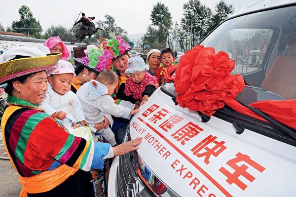 The woman, pregnant with twins, lived in Xiaoyuanzi, a mountainous village 40 kilometers from Weng'an's county seat. She had slipped into a coma, which caused her family to call the hospital for help. The Health Express for Mothers vehicle arrived in short order and transferred the woman to the hospital. Finally, the woman and her babies were out of danger. "Without the vehicle, my daughter-in-law and my grandchildren would have lost their lives," recalled the woman's grateful mother-in-law.