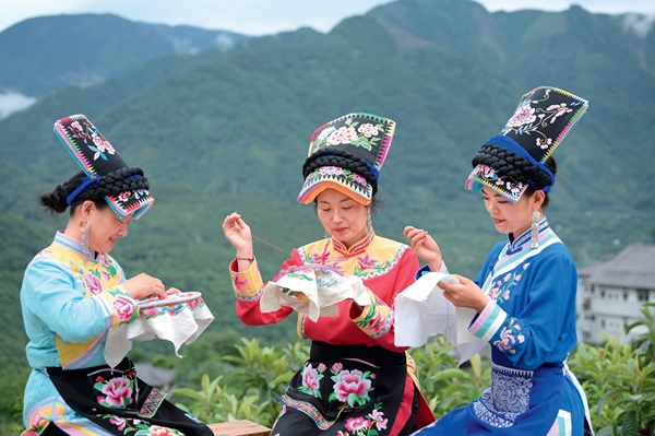 So far, the project has funded 38 workshops, three intangible-cultural-heritage exhibition centers and one embroidery business center in 16 provinces or municipalities. The project has helped craftswomen receive orders worth 10 million yuan ($140.9 million), and it has enabled more than 80,000 craftswomen to work at home.